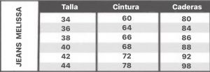 (considerar que da aproximadamente 10-15 cm más de lo indicado cada medida). En la foto se utiliza talla 34 con 60 cm de cintura, 90 cm de caderas.